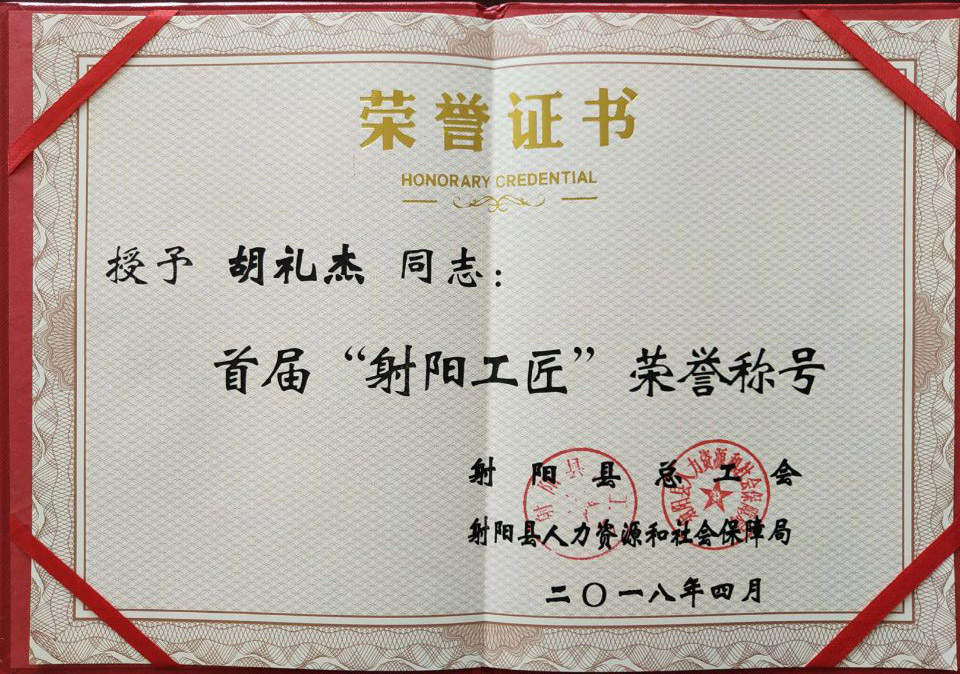 “射陽(yáng)工匠”榮譽(yù)稱號(hào)